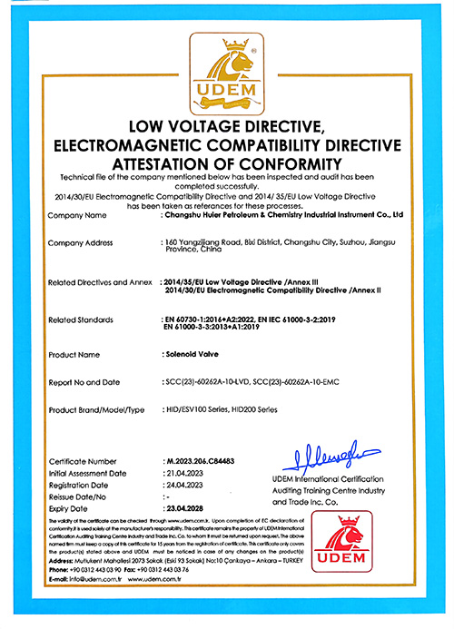 CE certificate for solenoid valve