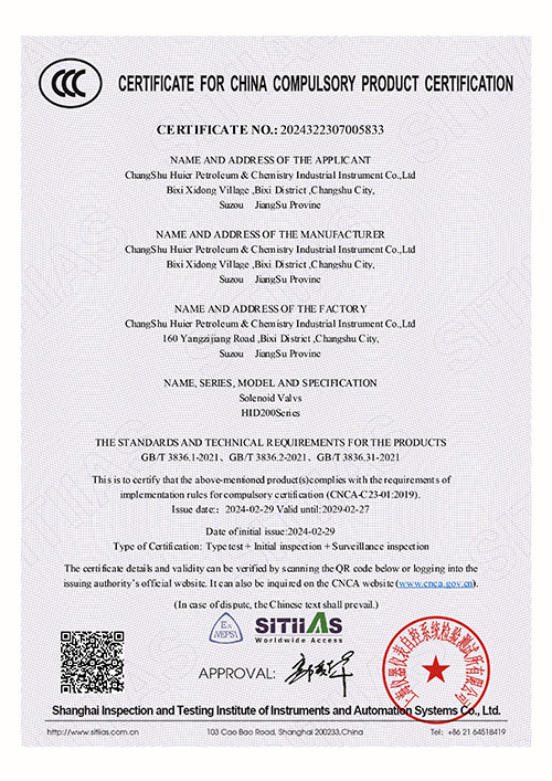 HID200 Electromagnetic Valve certificate